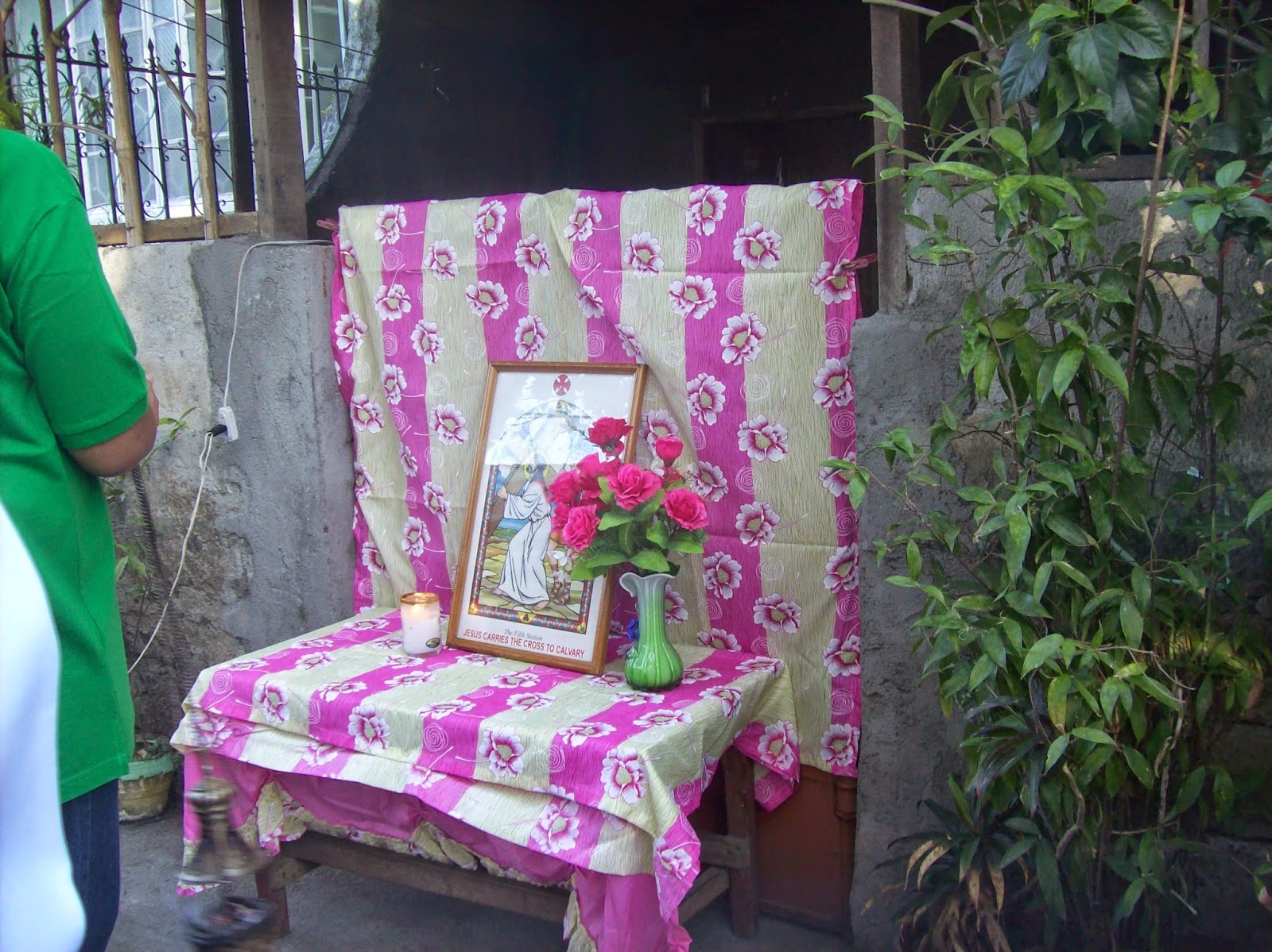 Earlier in the week, those in charge in the villages ask home owners if they will take a Station. An image is given to them for the week. Homeowners prepare an altar that may have statues, candles, flowers, etc. Homeowners are also given a prayer to read throughout the week.